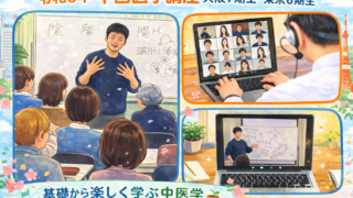 令和8年 中国医学講座(一般クラス)受講生募集 中国医学を「体系立てて」基礎から学ぶ、全6回(1回3時間)の初級コースです。 陰陽五行・気血津液・臓象・経絡・病因病機までを一通り学び、日々の養生理解や臨床・施術・相談の土 … 続きを読む 【受講生募集】令和8年 中国医学講座 大阪7期生/東京6期生